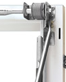 Two point locking as standard with hard PVC latches in tough zinc diecast housings that engage automatically and quietly at either side of the door into steel latch keeps.